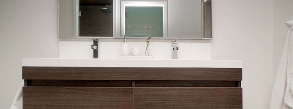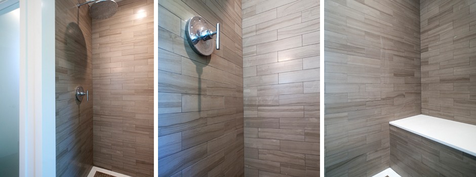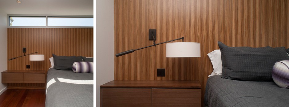 The end result added approximately 700 square feet to this modern home. The master suite included a bedroom, bath and spacious walk-in closet. In the bedroom, we custom-built a headboard and built-in nightstand using zebra wood that gave the bedroom character and warmth. The spacious deck gave the homeowners access to spectacular city views! And a curved concrete bench and fireplace created a comfortable entertaining space for family and friends.