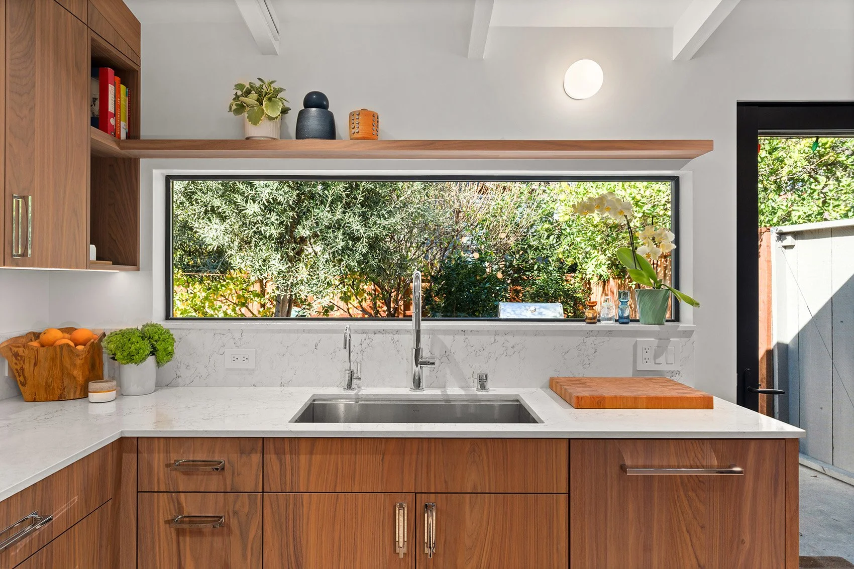 A kitchen remodel focused on improving function and sightlines, featuring a reworked layout, custom cabinetry solutions, and carefully placed lighting to enhance daily use.